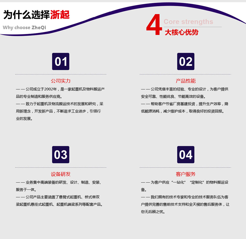 杭州浙起機械有限公司創建于2002年10月,是著名的鋼絲繩電動葫蘆制造商和服務供應商,總部位于風光旖旎的中國旅游城市杭州-富陽。公司自成立以來,不斷引進新技術、運用新工藝、研發新產品,研制的ZH系列鋼絲繩電動葫蘆,經受住了最嚴酷的環境考驗,無論是在工廠、倉庫、電力、鋼鐵、水泥、造紙、礦山領域,還是在現代物流、軍工制造領域,產品質量和技術性能都始終保持與國際同步。自行設計開發的ZHz冶金電動葫蘆在國內冶金行業得到了廣泛使用。在鋼絲繩電動葫蘆的設計與制造領域,杭州浙起機械有限公司是行業的領先者,產品遠銷歐洲、東南亞、南美洲、中東等國和港、澳、臺地區。 ZH系列鋼絲繩電動葫蘆是在引進德國先進電動葫蘆制造技術的基礎上,自行研制開發的新型鋼絲繩電動葫蘆。它采用方形外殼結構,電動機、行星減速器、電器裝置成一直線布置,減速器置